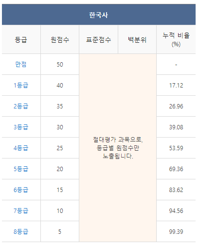 <2021년 6월 고1 모의고사 한국사 등급컷>