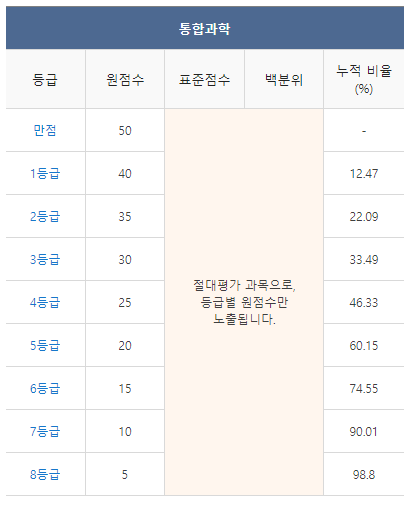 <2021년 6월 고1 모의고사 과학 등급컷>