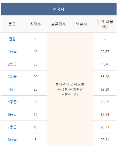 <2021년 3월 고2 모의고사 한국사 등급컷>