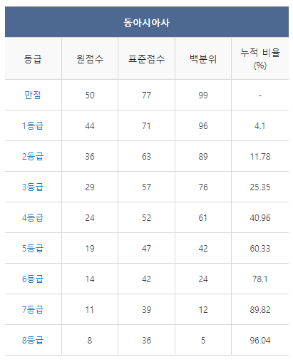 <2021년 3월 고2 모의고사 동아시아사 등급컷>