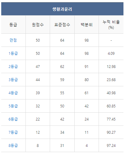 <2021년 3월 고2 모의고사 생활과윤리 등급컷>