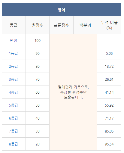<2021년 3월 고2 모의고사 영어 등급컷>