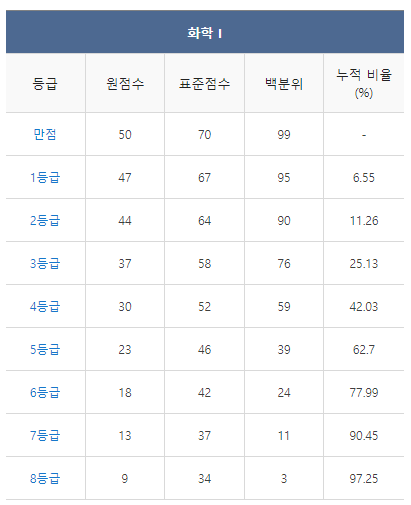 <2021년 3월 고2 모의고사 화학1 등급컷>