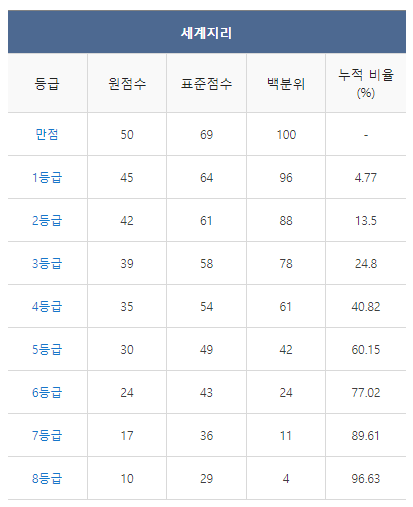 <2021년 3월 고2 모의고사 세계지리 등급컷>