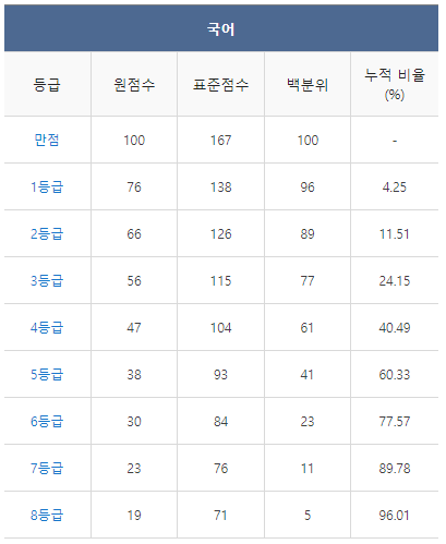 <2021년 3월 고2 모의고사 국어 등급컷>