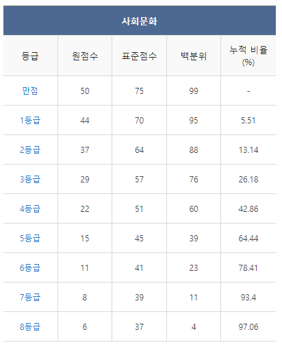 <2021년 9월 고2 모의고사 사회문화 등급컷>