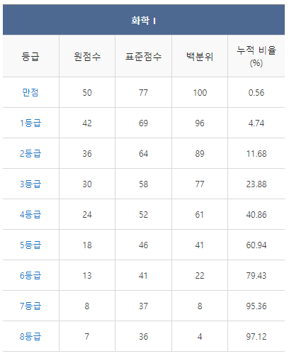 [2021년 11월 고2 모의고사 화학1 등급컷]