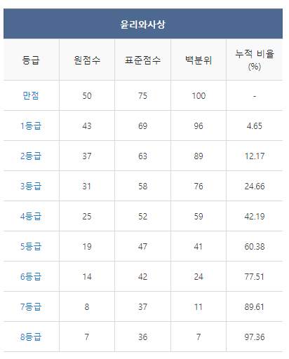 [2021년 11월 고2 모의고사 윤리와사상 등급컷]
