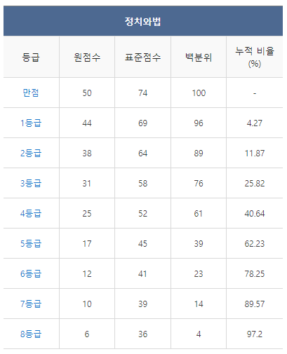 [2021년 11월 고2 모의고사 정치와법 등급컷]