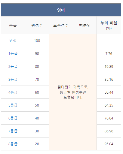 [2021년 11월 고2 모의고사 영어 등급컷]