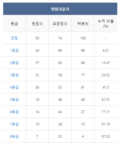 [2021년 11월 고2 모의고사 생활과윤리 등급컷]