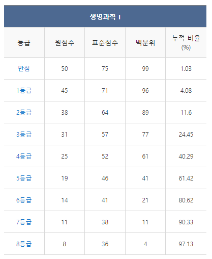 [2021년 11월 고2 모의고사 생명과학1 등급컷]