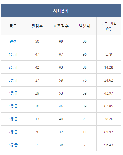 [2021년 11월 고2 모의고사 사회문화 등급컷]