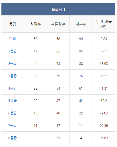 [2021년 11월 고2 모의고사 물리1 등급컷]