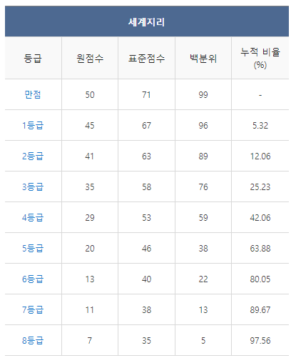 [2021년 11월 고2 모의고사 세계지리 등급컷]