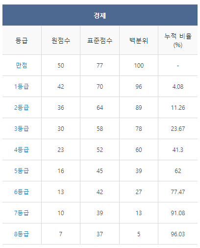 [2021년 11월 고2 모의고사 경제 등급컷]
