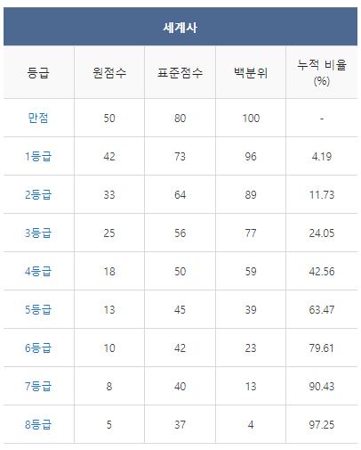 [2021년 11월 고2 모의고사 세계사 등급컷]