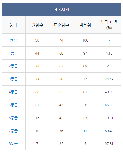 [2021년 11월 고2 모의고사 한국지리 등급컷]