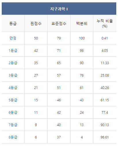 [2021년 11월 고2 모의고사 지구과학1 등급컷]