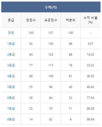 <2020년 수능 수학가형 등급컷,2021학년도 수능 수학가형 등급컷>