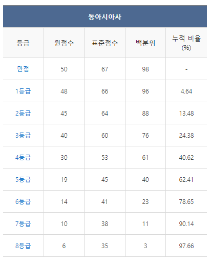 <2020년 수능 동아시아사 등급컷,2021학년도 수능 동아시아사 등급컷>