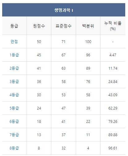 <2020년 수능 생명과학1 등급컷,2021학년도 수능 생명과학1 등급컷>