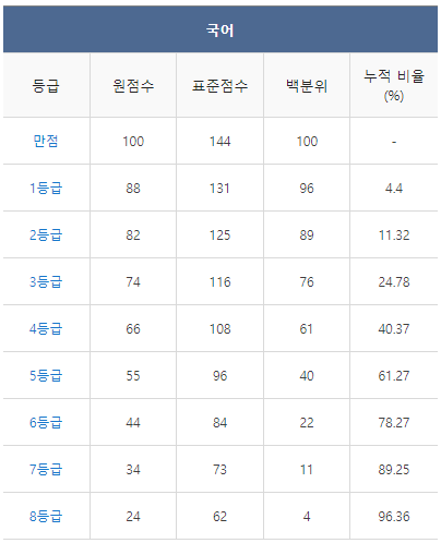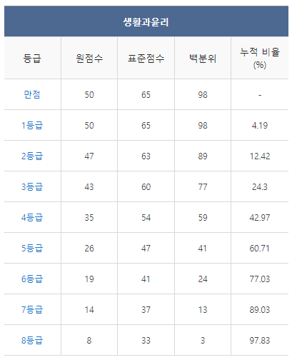 <2020년 수능 국어 등급컷,2021학년도 수능 생활과윤리 등급컷>