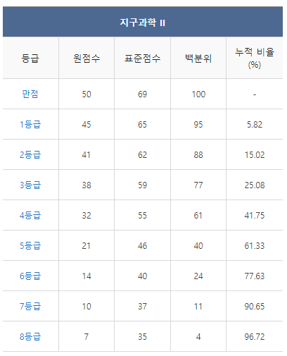 <2020년 수능 지구과학2 등급컷,2021학년도 수능 지구과학2 등급컷>