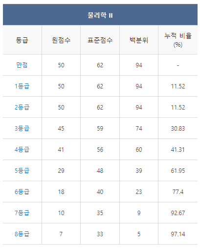 <2020년 수능 물리2 등급컷,2021학년도 수능 물리2 등급컷>