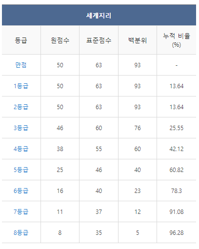 <2020년 수능 세계지리 등급컷,2021학년도 수능 세계지리 등급컷>