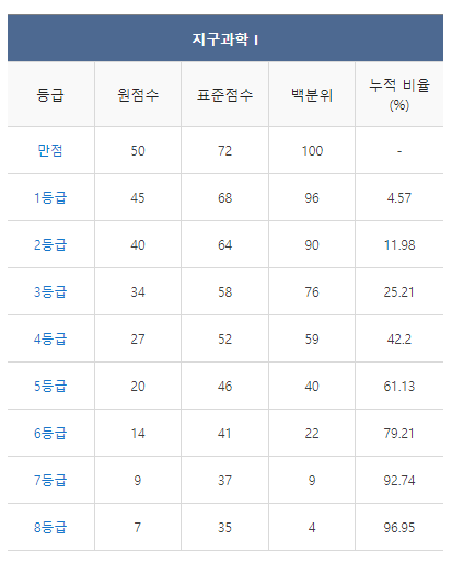 <2020년 수능 지구과학1 등급컷,2021학년도 수능 지구과학1 등급컷>