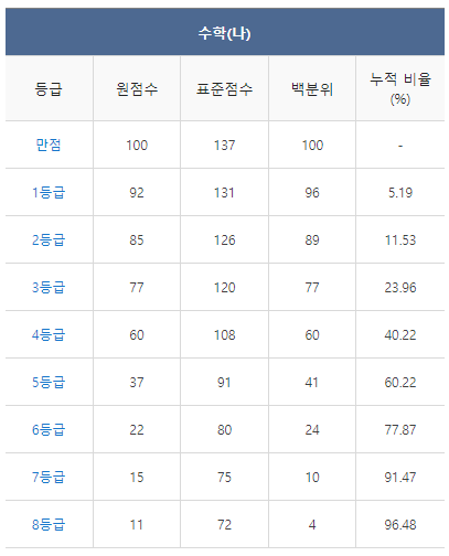 <2020년 수능 수학나형 등급컷,2021학년도 수능 수학나형 등급컷>