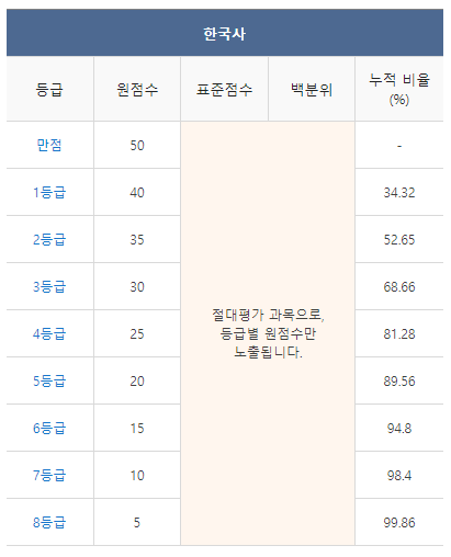 <2020년 수능 한국사 등급컷,2021학년도 수능 한국사 등급컷>