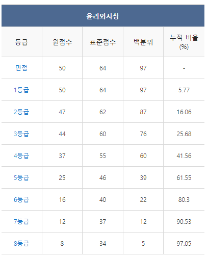 <2020년 수능 윤리와사상 등급컷,2021학년도 수능 윤리와사상 등급컷>