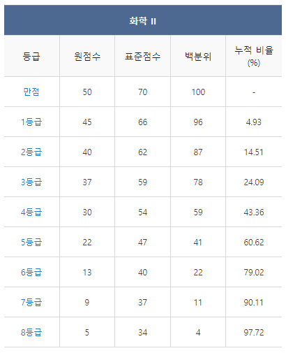 <2020년 수능 화학2 등급컷,2021학년도 수능 화학2 등급컷>