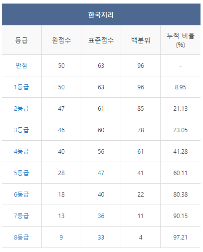 <2020년 수능 한국지리 등급컷,2021학년도 수능 한국지리 등급컷>