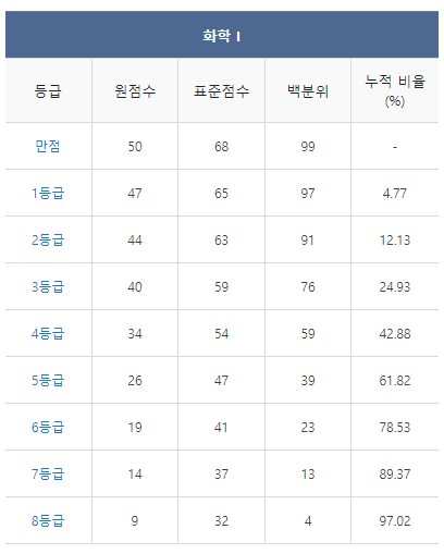 <2020년 수능 화학1 등급컷,2021학년도 수능 화학1 등급컷>