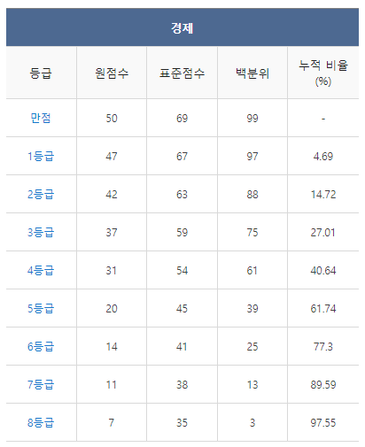 <2020년 수능 경제 등급컷,2021학년도 수능 경제 등급컷>