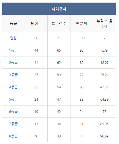 <2020년 수능 사회문화 등급컷,2021학년도 수능 사회문화 등급컷>