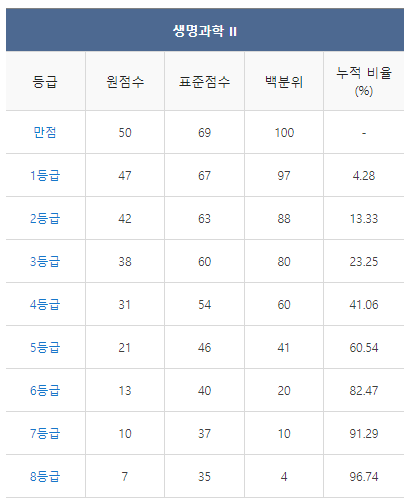 <2020년 수능 생명과학2 등급컷,2021학년도 수능 생명과학2 등급컷>