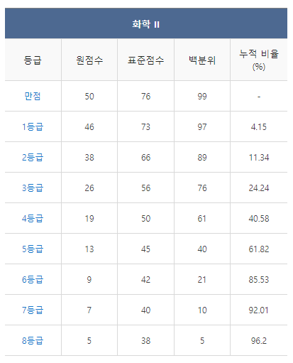 <2021년 4월 고3 모의고사/학력평가 화학2 등급컷>