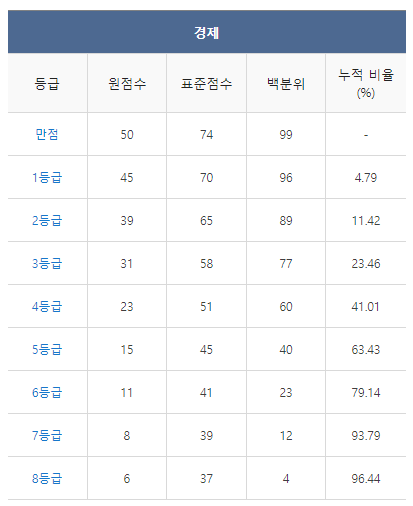 <2021년 4월 고3 모의고사/학력평가 경제 등급컷>