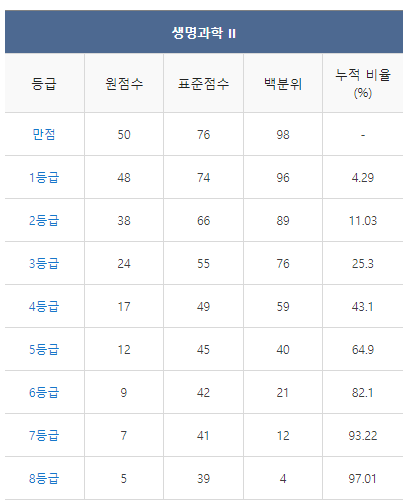 <2021년 4월 고3 모의고사/학력평가 생명과학2 등급컷>