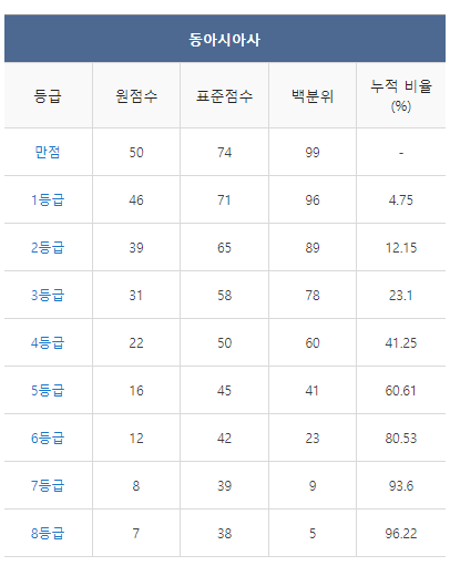 <2021년 4월 고3 모의고사/학력평가 동아시아사 등급컷>