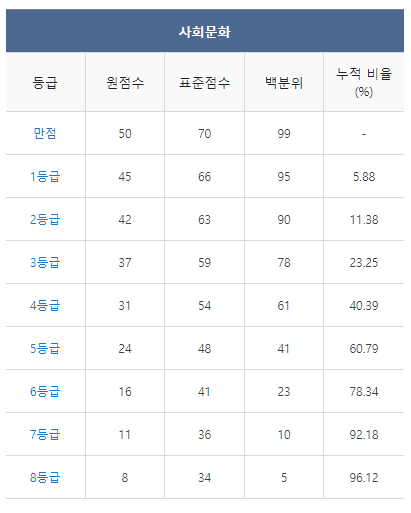 <2021년 4월 고3 모의고사/학력평가 사회문화 등급컷>