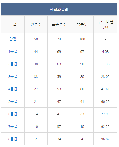 <2021년 4월 고3 모의고사/학력평가 생활과윤리 등급컷>