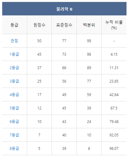 <2021년 4월 고3 모의고사/학력평가 물리2 등급컷>