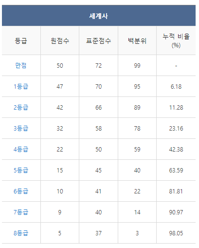 <2021년 4월 고3 모의고사/학력평가 세계사 등급컷>