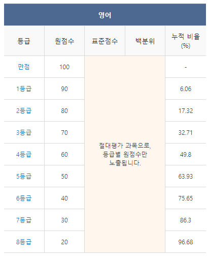 <2021년 4월 고3 모의고사/학력평가 영어 등급컷>