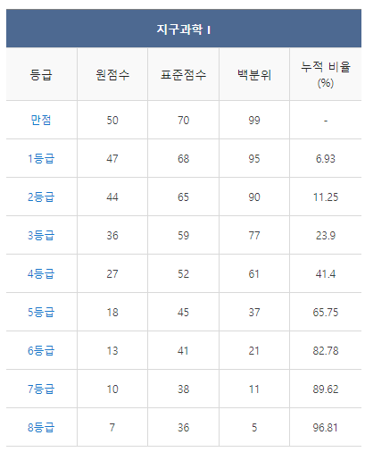 <2021년 4월 고3 모의고사/학력평가 지구과학1 등급컷>